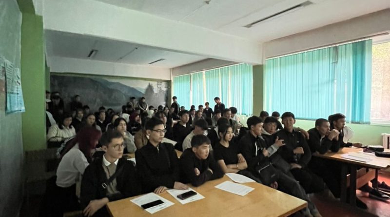 «День защиты Озонового слоя» читают лекцию сотрудники Озонового центра Кыргызстана. Лекторы: Муханова Камиля ассистент озонового центра, Исабекова Аида национальный консультант